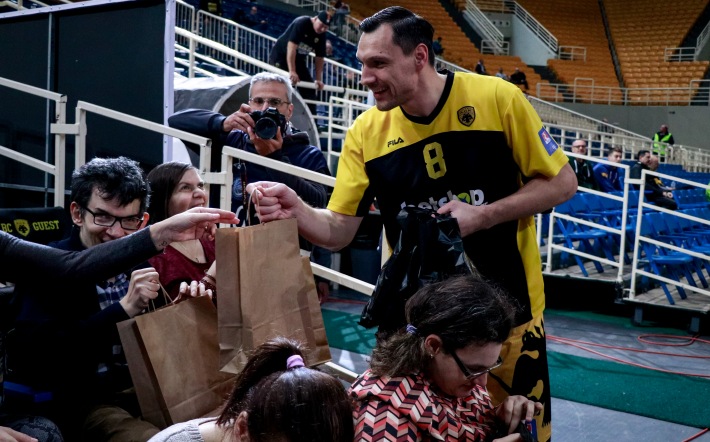 Η ΑΕΚ τιμήθηκε με το βραβείο FAIR PLAY της Basket League για το μήνα Νοέμβριο και συνεχίζει τις κινήσεις που την έκαναν να ξεχωρίσει εξαγωνιστικά. Σήμερα στο ΟΑΚΑ για την αναμέτρηση με τον Άρη έκανε μία ακόμη ξεχωριστή συνεργασία φιλοξενώντας φιλάθλους από τη Στέγη Υποστηριζόμενης Διαβίωσης "Φωτεινή", της Εταιρείας Προστασίας Σπαστικών, που στεγάζεται σε ιδιόκτητη κατοικία στην περιοχή Πατήσια και αφορά στη Μόνιμη Διαβίωση οκτώ ενηλίκων με Εγκεφαλική Παράλυση. Οι αρχηγοί της Ένωσης, Γιόνας Ματσιούλις και Δημήτρης Μαυροειδής ήταν εκεί για να προσφέρουν δώρα με πλατύ χαμόγελο!
