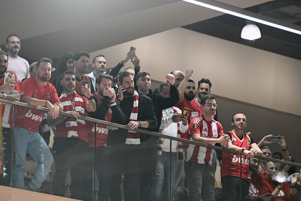 Fans of Olympiakos during the Turkish Airlines Euroleague match between Monaco and Olympiacos at Salle Gaston Medecin on December 4, 2024 in Monaco, Monaco. (Photo by Pascal Della Zuana/Icon Sport) - Photo by Icon SportPanagiotis ANGELOPOULOS, President of Olympiakos during the Turkish Airlines Euroleague match between Monaco and Olympiacos at Salle Gaston Medecin on December 4, 2024 in Monaco, Monaco. (Photo by Pascal Della Zuana/Icon Sport) - Photo by Icon Sport