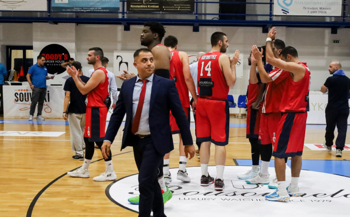 «Χάθηκε ένα παιχνίδι που στο τέλος έμοιαζε δικό μας.Πολλα συγχαρητήρια στα παιδιά και στους προπονητες για την υπερπροσπαθεια πάρα το ότι κατεβήκαμε με 8 παίκτες!! και ειμαστε στον δρόμο από της 5 το πρωί πραγματικά τα έδωσαν ολααααα!!!!!Ένα μεγάλο μπράβο στους διαιτητές του αγώνα γιατί κρατήσανε ένα δύσκολο παιχνίδι που κρίθηκε στον πόντο σε πάρα πολύ καλό επίπεδο χωρίς να κάνουν λάθοι.Ευχαριστουμε πολύ την διοίκηση της Μυκόνου για την φιλοξενία και υπόσχομαι να ανταποδωσουμε στον δεύτερο γύρο με μια ανάλογη φιλοξενία.Για το τέλος άφησα το σημαντικότερο για εμένα μπράβο που πρέπει νά δώσω στον κόσμο της Μυκόνου για τη άψογη και άκρως "αθλητική "συμπεριφορά τους,ασχολήθηκαν μόνο με την ομάδα τους και όπως και να πήγαινε το παιχνίδι δεν ασχολήθηκαν καθόλου με τους δικούς μας παίκτες η τον πάγκο μας και όλα αυτά σε ένα παιχνίδι που κρίθηκε στον ποντο.ΠΟΛΛΑ ΣΥΓΧΑΡΗΤΉΡΙΑ στον κόσμο της Μυκόνου».