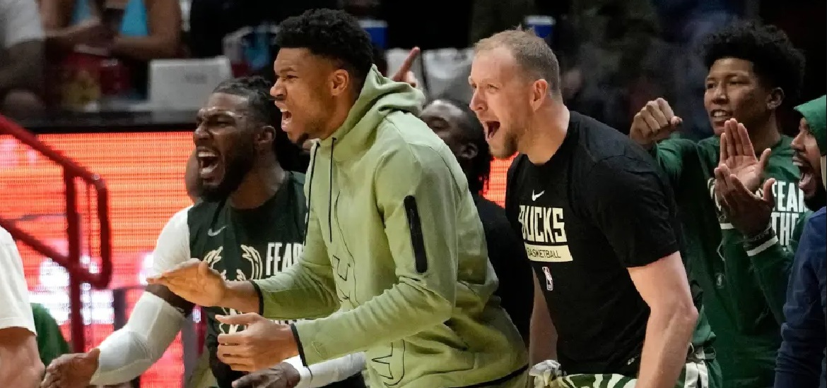 Στο τρίτο ματς των Μιλγουόκι Μπακς με τους Μαϊάμι Χιτ, στο «Kaseya Center» για τον πρώτο γύρο των πλέι οφ στο ΝΒΑ, ήταν συνέχεια όρθιος και έδινε οδηγίες στους συμπαίκτες του. Ωστόσο, κατά τη διάρκεια της δεύτερης περιόδου κι ενώ ο Τζίμι Μπάτλερ προσπαθούσε να ποστάρει τον Τζρου Χόλιντεϊ, δέχθηκε παρατήρηση από τους διαιτητές για... παρεμπόδιση της αναμέτρησης. Τον προειδοποίησαν, μάλιστα, πως εάν συνέχιζε στον ίδιο ρυθμό θα δεχόταν και τεχνική ποινή, κάτι που τον ανάγκασε να κατεβάσει τόνους στη συνέχεια της αναμέτρησης.