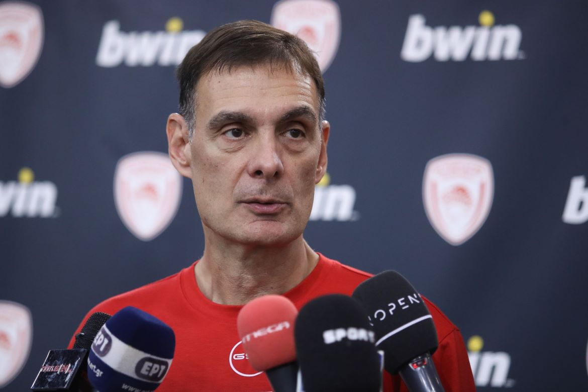 Για το γεγονός πως άπαντες περιμένουν έναν πολύ ισχυρό Ολυμπιακό: «Αυτός είναι και ο κίνδυνος. Όλοι περιμένουν να κερδίσουμε ενώ δεν είναι έτσι τα πράγματα. Απαιτεί πολλά πράγματα για να το κερδίσεις και από τις δύο ομάδες. Θέλει συγκέντρωση, θέλει ετοιμότητα πνευματική, σωματική, τακτική και συχνά οι συγκυρίες μέσα σε ένα ματς παίζουν ρόλο, η μέρα των παικτών. Νομίζω δεν πρέπει να το δούμε έτσι. Να το επικεντρώσουμε στο πρώτο ματς. Αν θέλουμε να κάνουμε μια συνολική αποτίμηση νομίζω πως θα είμαστε μια ομάδα που θα παλεύει κάθε παιχνίδι, θα κάνει το καλύτερο που μπορεί. Το ρόστερ που έχουμε με 13 παίκτες που μπορούν να παίξουν σε αυτό το επίπεδο. Δοκιμασμένα μπορούν να παίξουν και αυτό που μένει είναι να παίξουν καλά μαζί».