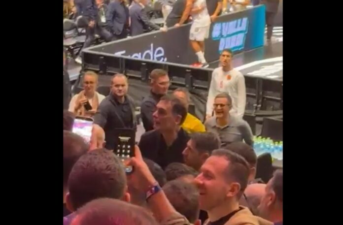 Οπαδός έβρισε στα ελληνικά τον Γιώργο Μπαρτζώκα μετά τη λήξη του αγώνα του Ολυμπιακού απέναντι στη Ντουμπάι στην Coca Cola Arena.