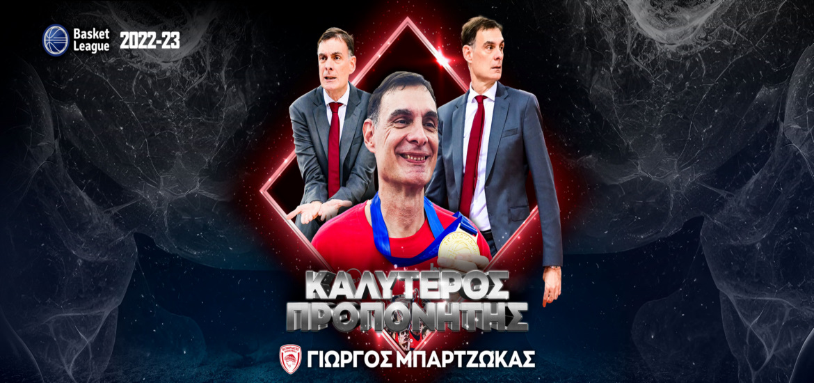 Ο Γιώργος Μπαρτζώκας βραβεύεται με τον τίτλο του Καλύτερου Προπονητή της Basket League για τέταρτη φορά στην καριέρα τoυ, αλλά για πρώτη ως κόουτς του Ολυμπιακού. Ο 58χρονος προπονητής είχε αναδειχθεί Κόουτς της Χρονιάς στην «παρθενική» σεζόν του ως χεντ κόουτς στο Πρωτάθλημα, την περίοδο 2006-7, όταν ήταν στο «τιμόνι» της Ολύμπιας Λάρισας.