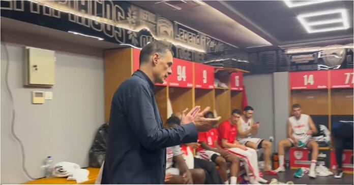 Ο Γιώργος Μπαρτζώκας μίλησε στους παίκτες του Ολυμπιακού στα αποδυτήρια μετά την εμφατική νίκη με 90-86 επί του Παναθηναϊκού για τη δεύτερη αγωνιστική της Stoiximan GBL.