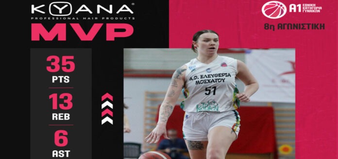Έτσι, από τη Ελευθερία Μοσχάτου έρχεται η KYANA MVP για την 8η Αγωνιστική της Α1 Γυναικών.
