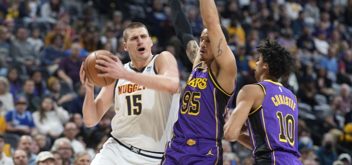 Ο Νίκολα Γιόκιτς έκανε το ενδέκατο φετινό triple double του με 14π., έντεκα ριμπάουντ και δεκαέξι ασίστ και ο Τζαμάλ Μάρεϊ είχε 34π. και εφτά ριμπάουντ, οδηγώντας τους Ντένβερ Νάγκετς στη νίκη με 122-109 επί των Λος Άντζελες Λέικερς στην «Ball Arena».