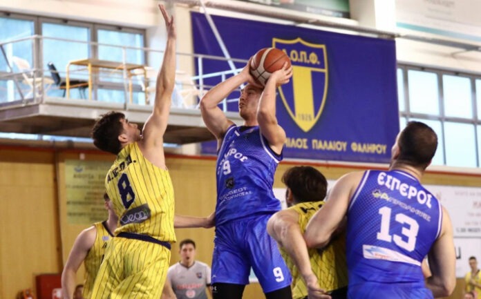 Με τον Κοντούδη (18 π., 2 τριπ.) να πραγματοποιεί σπουδαίο ντεμπούτο με τον Έσπερο, η ομάδα της Καλλιθέας κέρδισε στο «Σοφία Μπεφόν» με 66-65 το Παλαιό Φάληρο. Οι γηπεδούχοι με κορυφαίο, αλλά και μοιραίο τον Τίτιτς (18 π., 3 τριπ.) με αντεπίθεση διαρκείας επέστρεψαν από το -15 (46-61), και έχασαν την ευκαιρία με τον Μαυροβούνιο να πάρουν και τη νίκη στο τέλος. Εκτός από τον Κοντούδη για την ομάδα του Αντώνη Μάντζαρη ο Γκαγκαλούδης σκόραρε 10 πόντους. Για τους γηπεδούχους πολύ καλή απόδοση είχε και ο Μέξης (17 π.).