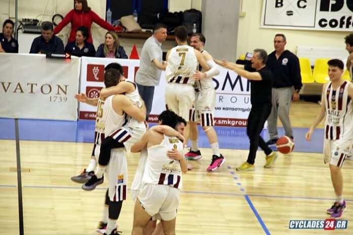 Μάλιστα η ομάδα της Νάξου κατάφερε να φέρει τη διαφορά ως και το +10 και παρά τις προσπάθειες των "ροσονέρι" είδε τον Μπάρμπα να πετυχαίνει καθοριστικούς πόντους στο φινάλε.