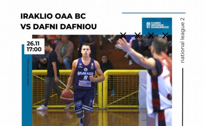 «Λόγω των καιρικών συνθηκών και της ακύρωσης του σημερινού ακτοπλοϊκού δρομολόγιου από Πειραιά για Ηράκλειο Κρήτης, ο αγώνας Ηράκλειο ΟΑΑ – ΓΣ Δάφνη Δαφνίου της 26/11 για την 6η αγωνιστική του Πρωταθλήματος της National League 2 (Γ’ Εθνική Κατηγορία Ανδρών) αναβάλλεται και θα οριστεί εκ νέου λίαν συντόμως».
