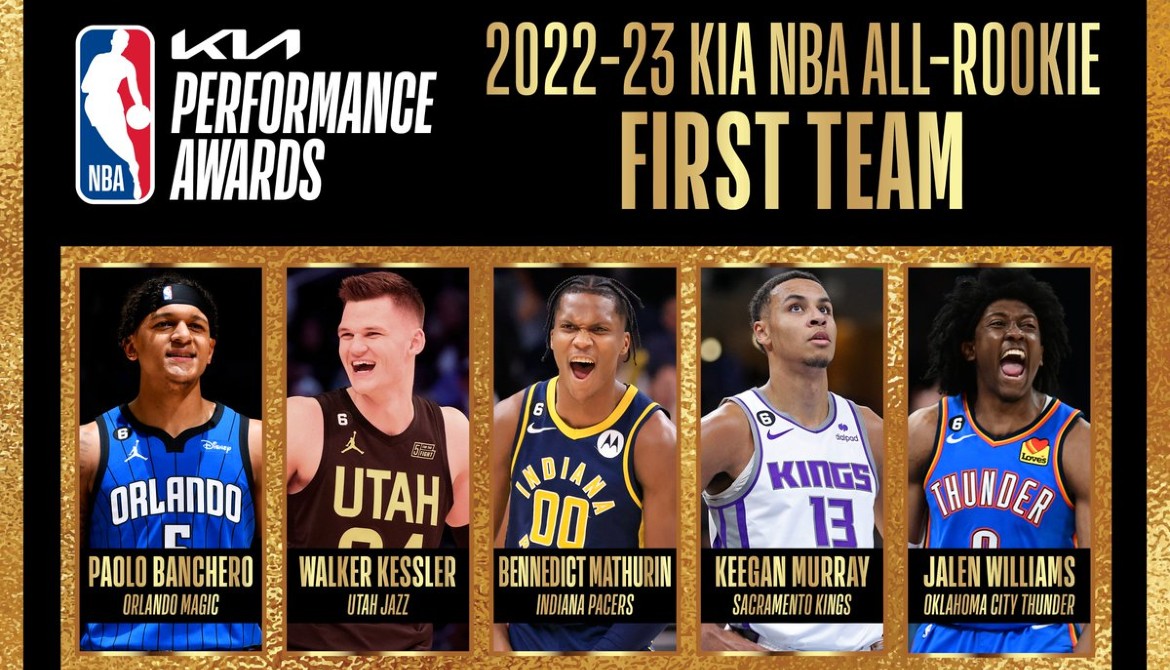 Τους πέντε rookies που ξεχώρισαν στη σεζόν 2022/23 ανακοίνωσε το NBA το βράδυ της Δευτέρας (8/5). Αυτοί είναι ο γκαρντ Μπεν Μάθουριν των Ιντιάνα Πέισερς, οι φόργουορντ Κίγκαν Μάρεϊ (Σακραμέντο Κινγκς), Πάολο Μπανκέρο (Ορλάντο Μάτζικ), Τζέιλεν Γουίλιαμς (Οκλαχόμα Σίτι Θάντερ) και ο σέντερ Γουόκερ Κέσλερ (Γιούτα Τζαζ).