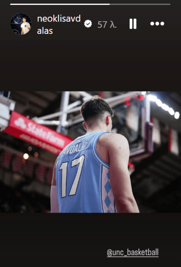 Ο Νεοκλής Αβδάλας, μάλιστα, ουσιαστικά... ανακοίνωσε από μόνος του τον επόμενο σταθμό του στο NCAA, καθώς έκανε story στο προσωπικό του λογαριασμό στο Instagram μια φωτογραφία του με το tag του επίσημου λογαριασμού του Νορθ Καρολάινα!