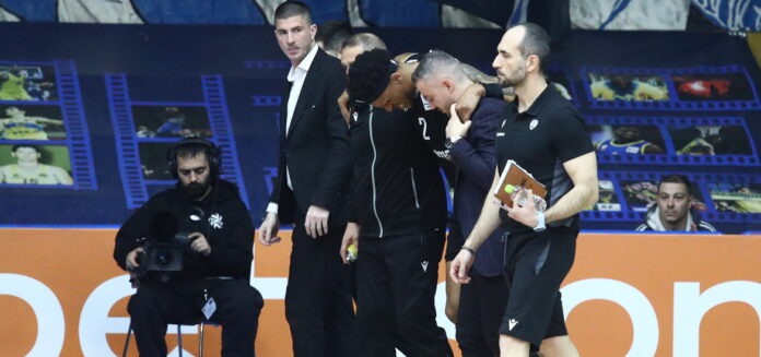 Ήταν το 17ο λεπτό του αγώνα που εξελίσσεται στο Περιστέρι όταν ο Αμερικανός σε προσπάθεια του στην επίθεση, πάτησε στο πόδι του Δημήτρη Κακλαμανάκη και γύρισε τον αστράγαλο του. Πρόκειται για μία εξέλιξη που, λογικά, θα τον αφήσει έξω από το υπόλοιπο του αγώνα στερώντας από τον ΠΑΟΚ μία από τις ελάχιστες επιλογές του, ειδικά στη γραμμή των ψηλών.