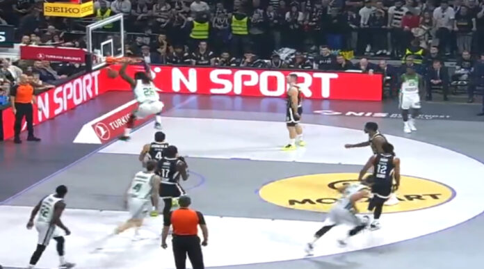 Ο Γάλλος σέντερ έλαβε την μπάλα μετά από πάσα του Σλούκα και την κάρφωσε στο καλάθι της Παρτιζάν
