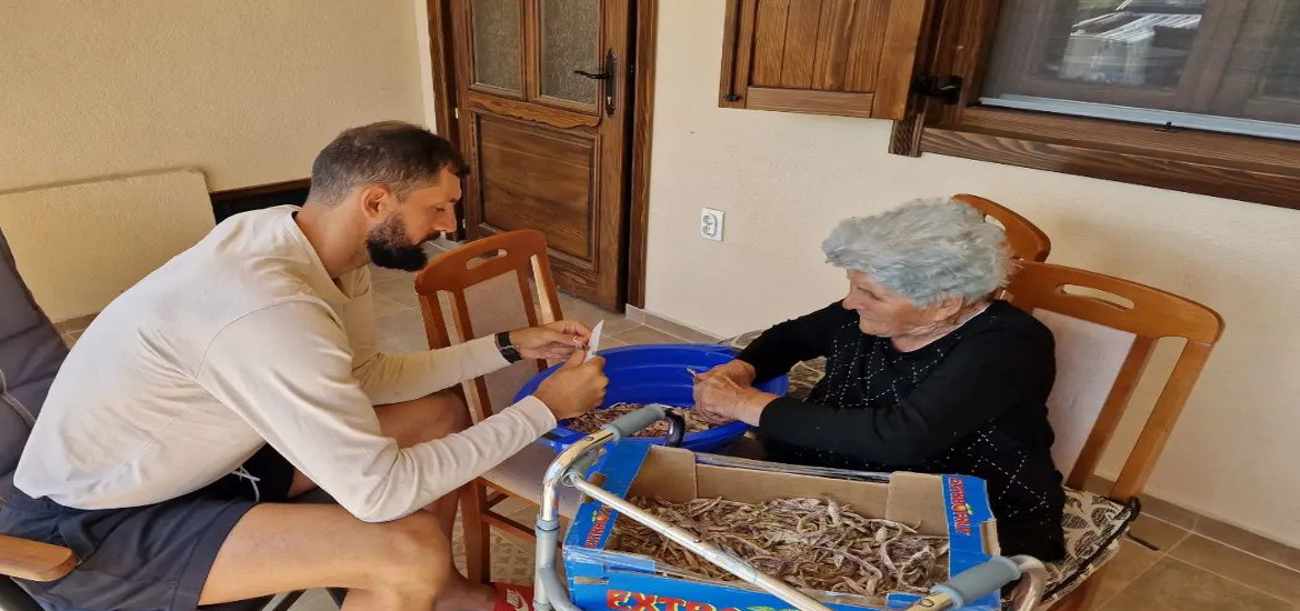 Μάλιστα, ανέβασε μία φωτογραφία στον επίσημο λογαριασμό του στο Instagram, όπου καθαρίζει φασολάκια με μία γιαγιά, γράφοντας: «Σε περίπτωση που κάποιος αναρωτιέται πού είμαι και τι κάνω».
