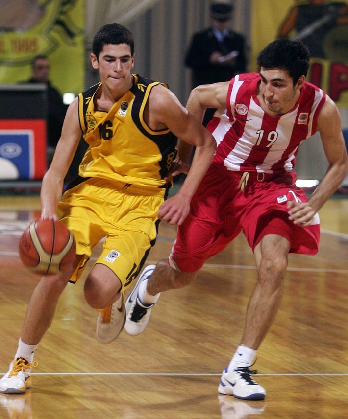 23 Οκτωβρίου 2010: Στιγμιότυπο από το ντεμπούτο του Λευτέρη Μποχωρίδη στην Basket League, σε ματς Άρης-Ολυμπιακός, με αντίπαλο τον Δημήτρη Κατσίβελη. Θα τον έχει για πρώτη φορά συμπαίκτη στη φετινή σεζόν