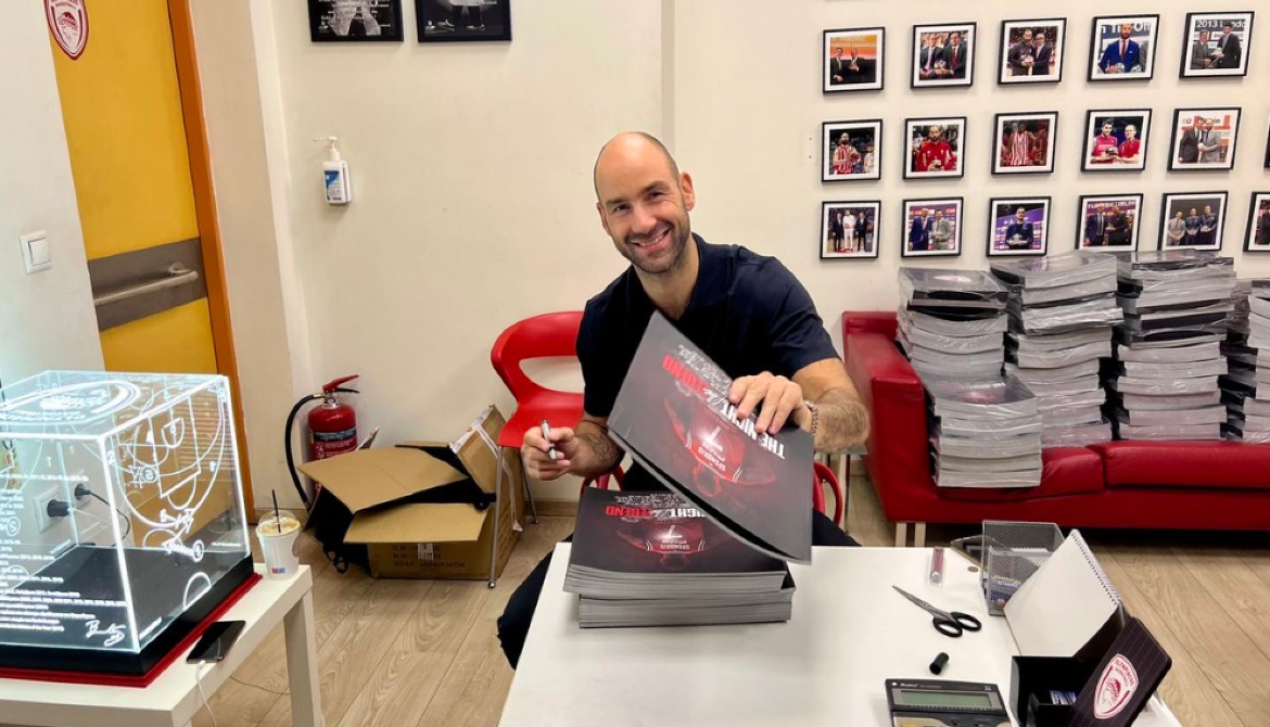Η μεγάλη βραδιά του Βασίλη Σπανούλη πλησιάζει. Ο θρυλικός αρχηγός του Ολυμπιακού βρέθηκε στο Στάδιο Ειρήνης και Φιλίας, υπογράφοντας τα συλλεκτικά λευκώματα που φτιάχτηκαν από την «ερυθρόλευκη» ΚΑΕ.