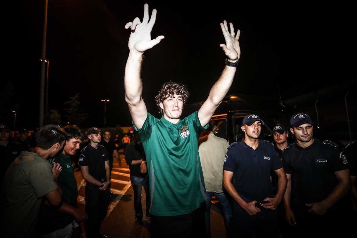 Συγκεκριμένα, ο Τούρκος σταρ φρόντισε να... ξεσηκώσει τον κόσμο που βρέθηκε εκεί για να τον υποδεχτεί, αφού σήκωσε τα 8 δάχτυλά του, αναφερόμενος φυσικά στο 8ο ευρωπαϊκό τρόπαιο το οποίο θα «κυνηγήσει» τη φετινή σεζόν ο Παναθηναϊκός.