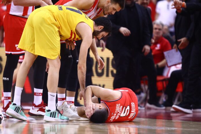 Άτυχος στάθηκε ο Γιαννούλης Λαρεντζάκης στο Game 4 με τη Μπαρτσελόνα, μιας και ο τραυματισμός που υπέστη τον καθιστά αμφίβολο για την αναμέτρησης της Τετάρτης του Πάσχα (8/5) στη Βαρκελώνη.