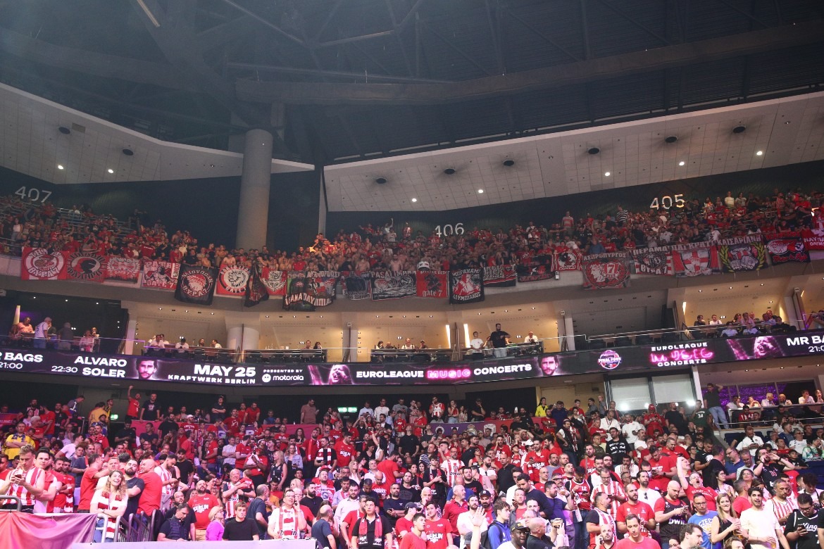 .@Olympiacos_BC fans making some NOISE in Berlin tonight 🔊 🔴⚪️#F4GLORY pic.twitter.com/bl23Tsxb4L