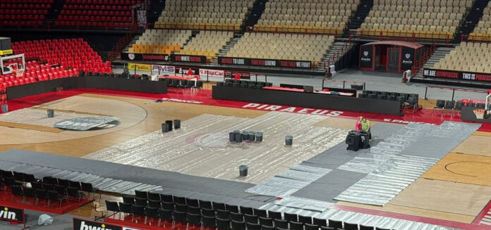 Οι άνθρωποι του γηπέδου όπως και τις προηγούμενες δύο φορές κάνουν ότι καλύτερο μπορούν προκειμένου να περιορίσουν την όποια ζημιά καλύπτοντας με νάιλον κομμάτια του παρκέ, τοποθετώντας παράλληλα και κουβάδες σε αρκετά σημεία του σταδίου.