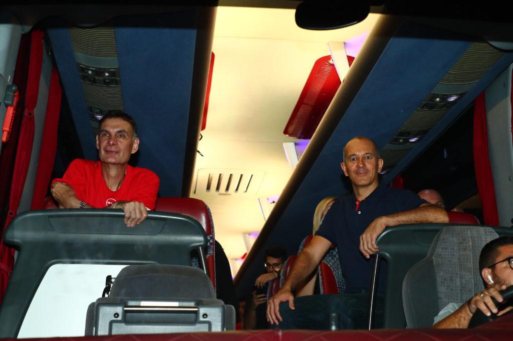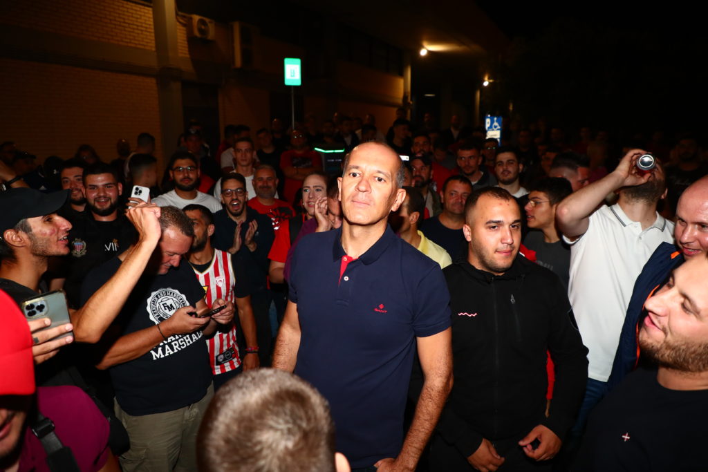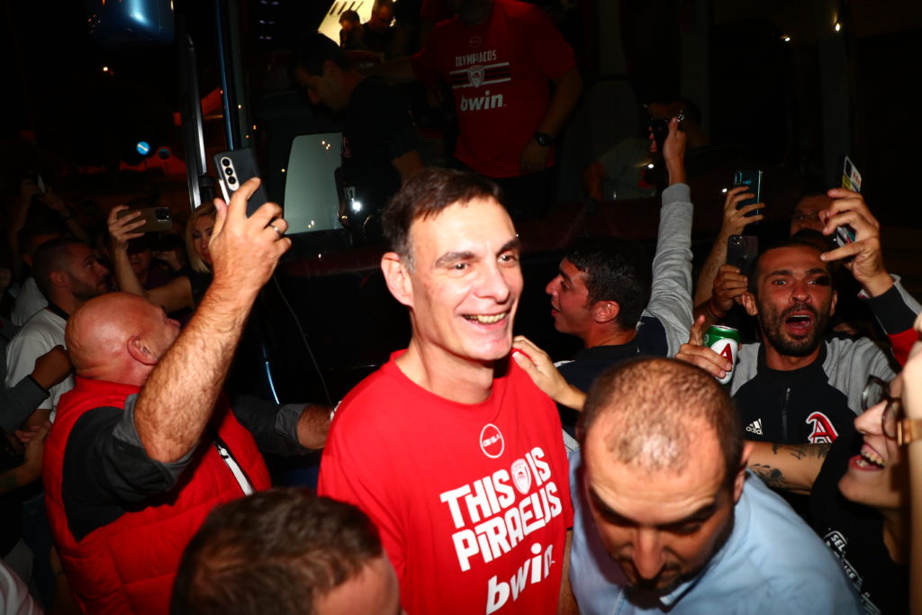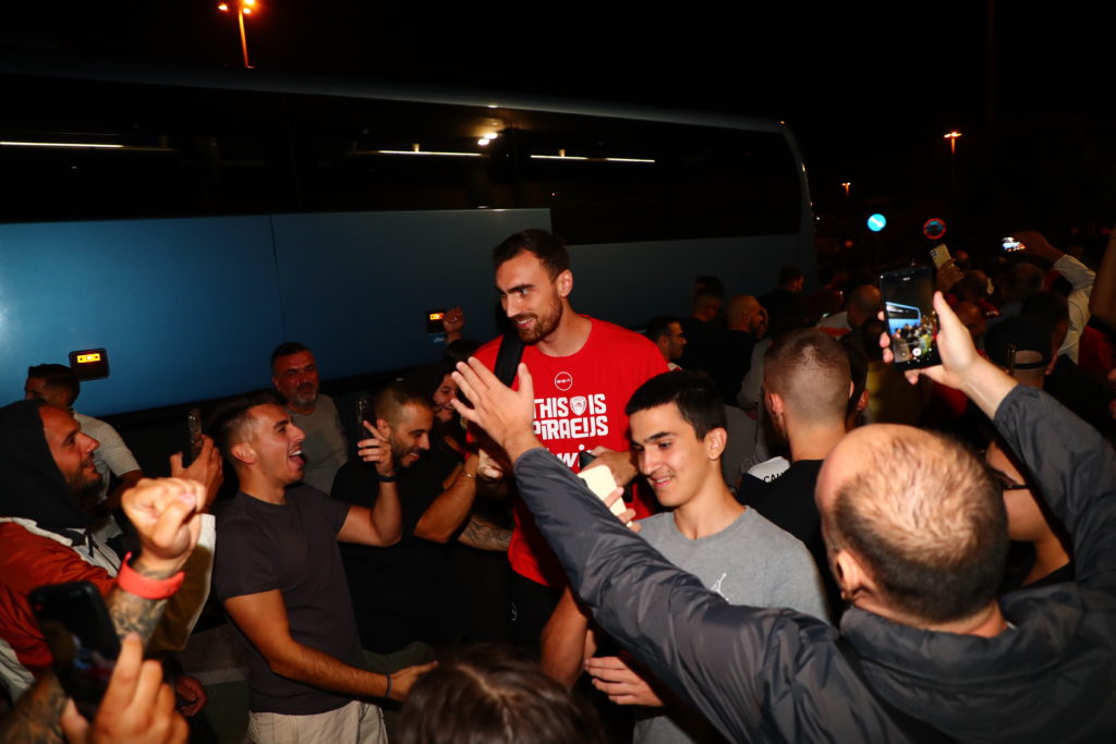 Οι φίλοι των «ερυθρόλευκων» μαζεύτηκαν στην έδρα της ομάδας του Πειραιά, το ΣΕΦ και υποδέχτηκαν τους παίκτες του Ολυμπιακού.