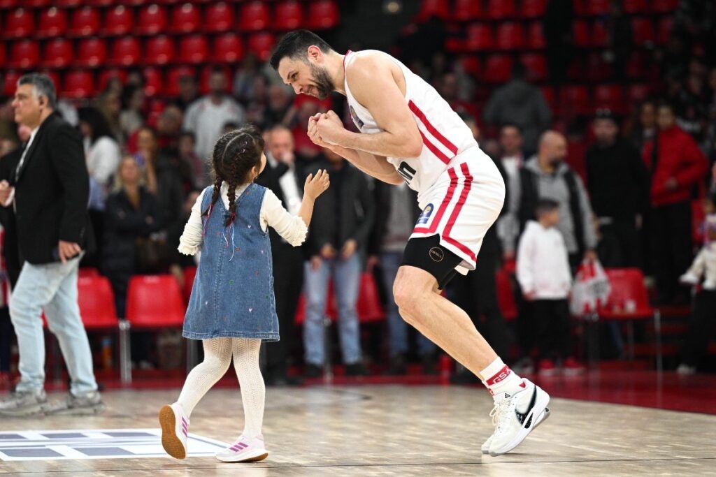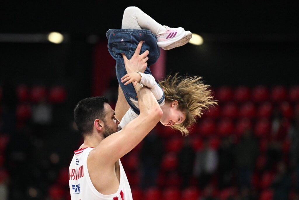 Όμορφες στιγμές μετά την κόρνα της λήξης, καθώς ο αρχηγός του Ολυμπιακού Κώστας Παπανικολάου έπαιξε με τις κόρες του μέσα στο παρκέ.