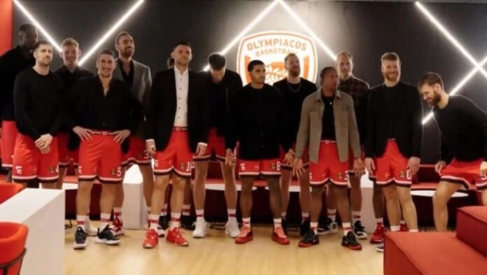 Ακολούθως οι παίκτες και ο προπονητής του Ολυμπιακού ευχήθηκαν "καλά Χριστούγεννα".