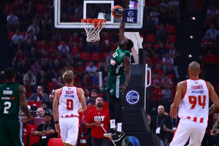Ο Ολυμπιακός και ο Παναθηναϊκός εξαρχής είχαν τους πρωταγωνιστές τους στο ντέρμπι, με τον Λορέντζο Μπράουν να σκοράρει κατά ριπάς για τους «πράσινους», τον Ματίας Λεσόρ να σταματά εντυπωσιακά τον Φαλ και το «τριφύλλι» να τρέχει στο ανοικτό γήπεδο με τελειώματα των Γκραντ και Ερνανγκόμεθ.