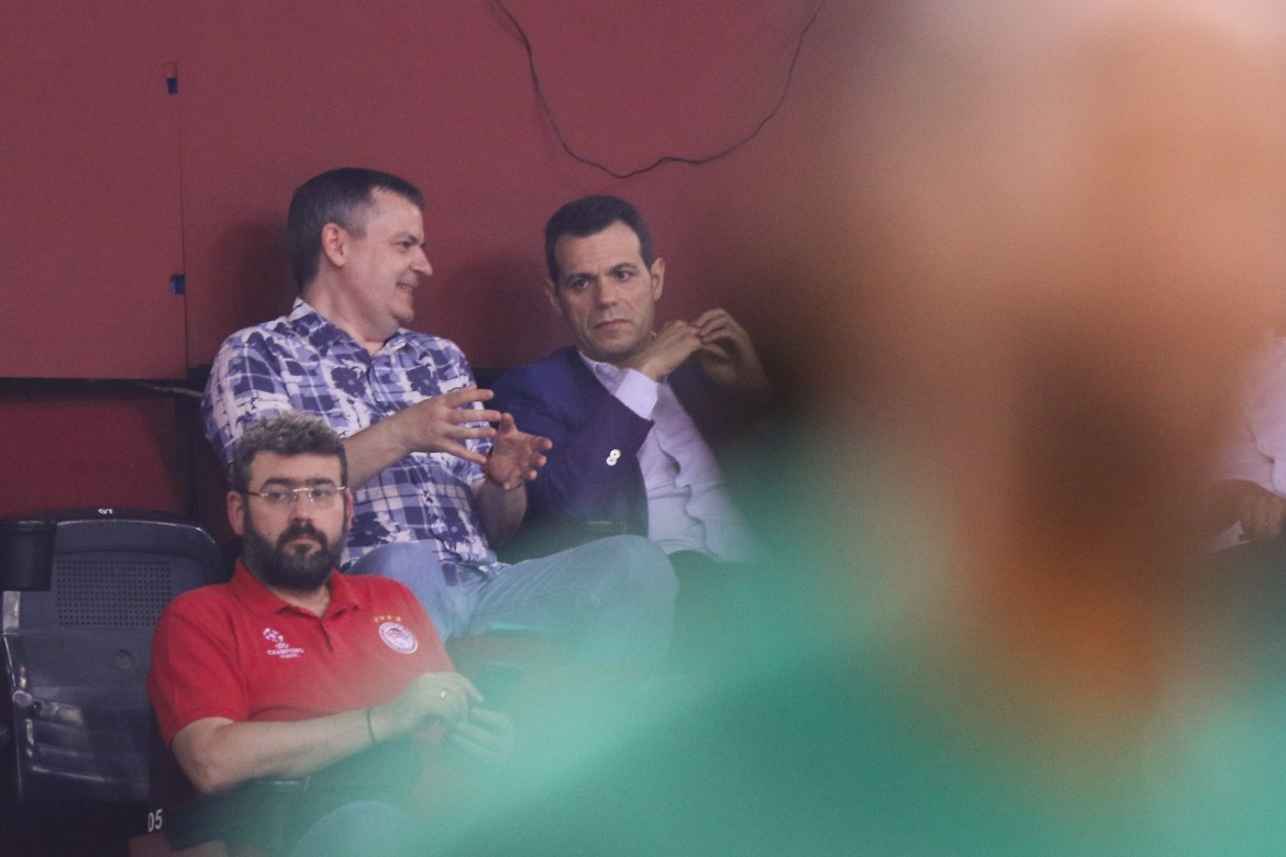 * Οι αδελφοί Αγγελόπουλοι δεν κρύβουν την προσμονή τους για τον τίτλο. Ο Παναγιώτης βρίσκεται, μάλιστα, στις μπροστινές πολυθρόνες του ΣΕΦ και όχι στην εξέδρα των επισήμων, όπως συνηθίζει με τον αδελφό του.