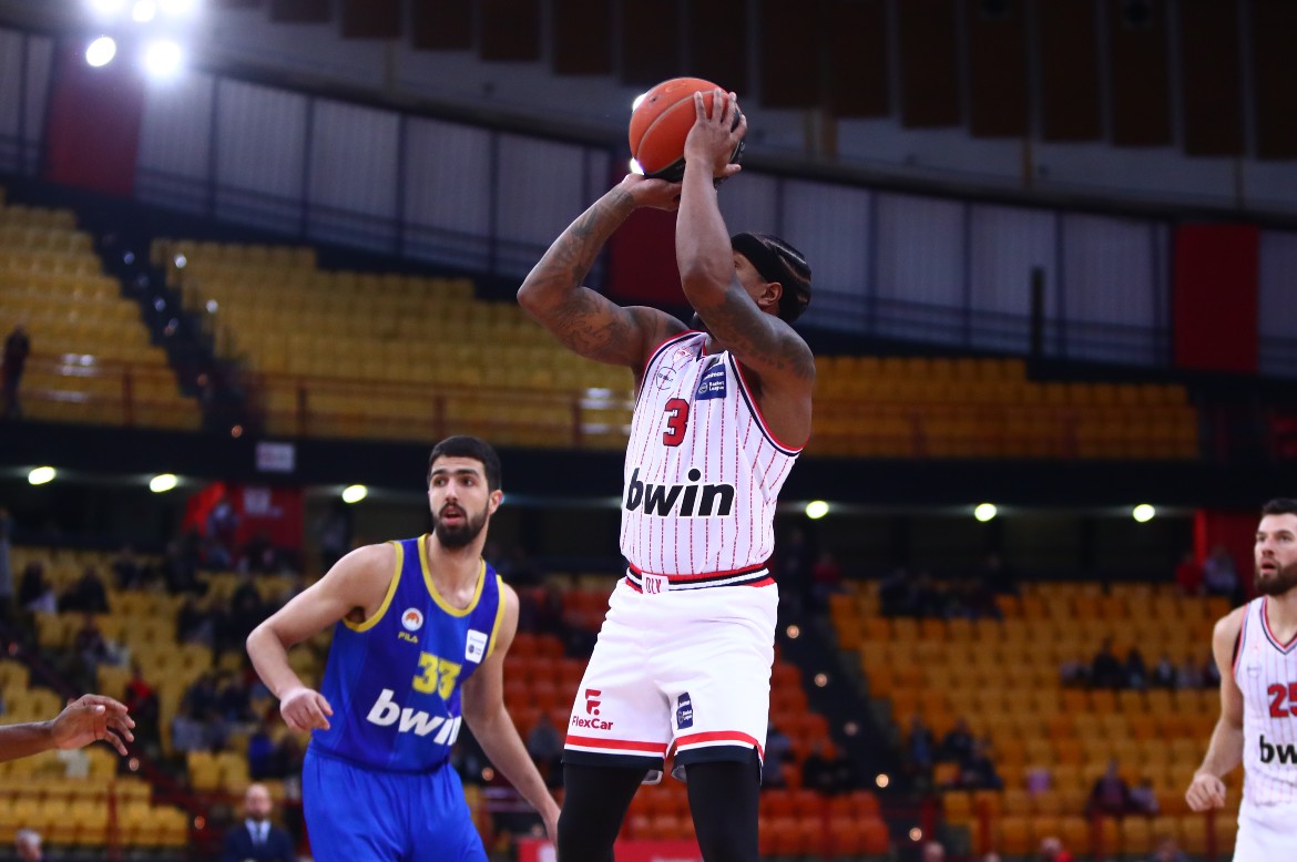 Ο Λούντζης και ο Λαρεντζάκης είχαν τις λύσεις από την περιφέρεια δίπλα στον Σέρβο σέντερ, για να φτάσει η διαφορά και στο +15 για τους γηπεδούχους (40-25 στο 17'), απέναντι σε έναν αντίπαλο που υπολόγιζε μόνο στο ταλέντο του Χαντς σε εκείνο το διάστημα, ωστόσο ένα σερί 0-8 ανάγκασε τον Μπαρτζώκα σε τάιμ άουτ, για να σημειωθεί το 43-33 του ημιχρόνου από τη γραμμή των βολών.
