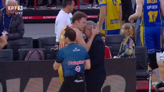 Δύο στιγμές με κοντράστ συναισθημάτων υπήρξαν στο ΣΕΦ και την αναμέτρηση του Ολυμπιακού με το Περιστέρι, με τον Τόμας Ουόκαπ και τον Σι Τζέι Χάρις να έχουν τη δική τους στιγμή έντασης, για να ακολουθήσει ένα όμορφο στιγμιότυπο στην αγκαλιά των Σάσα Βεζένκοφ και Γιώργου Λιμνιάτη.