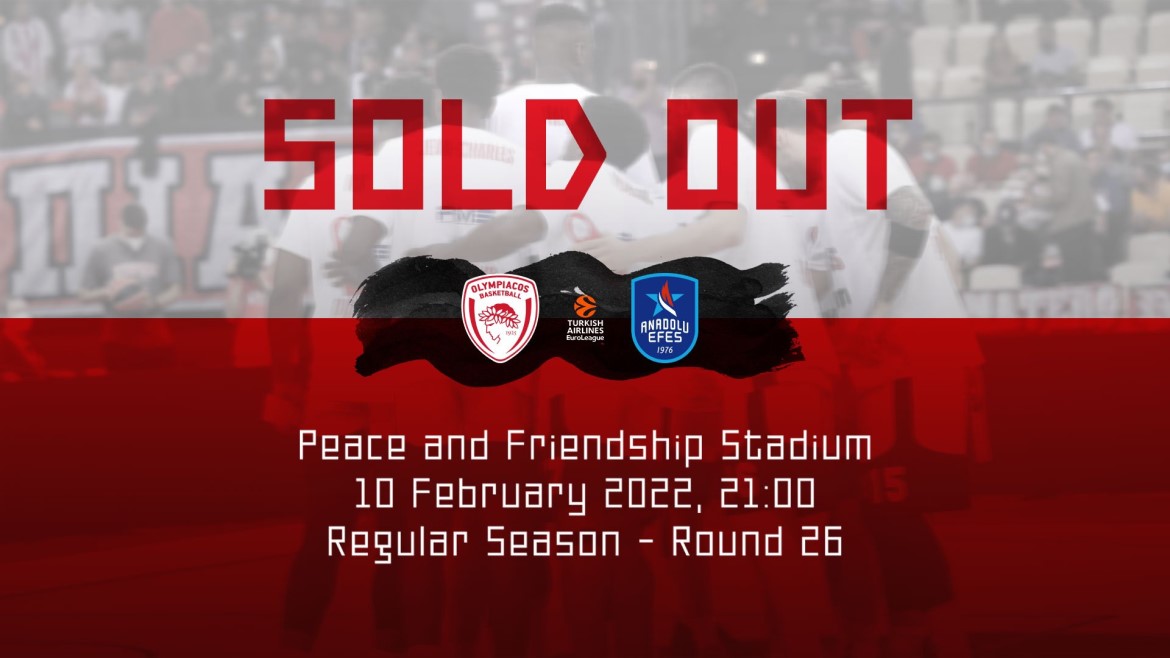Την εξάντληση των διαθέσιμων εισιτηρίων για το ματς του Ολυμπιακού με την Αναντολού Εφές (10/2, 21:00) ανακοίνωσε η "ερυθρόλευκη" ΚΑΕ.