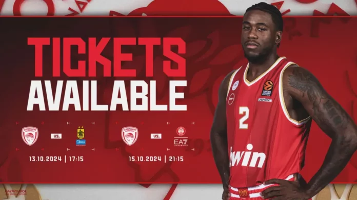 Η ΚΑΕ Ολυμπιακός με ανακοίνωση της, ενημέρωσε τον κόσμο της ομάδας, πως τα εισιτήρια για τα παιχνίδια με τον Άρη(13/10,17:15) για την Basket League και την Αρμάνι Μιλάνο(15/10,21:15) για την Ευρωλίγκα θα αρχίσουν να διατίθενται από αύριο, Τρίτη(8/10).