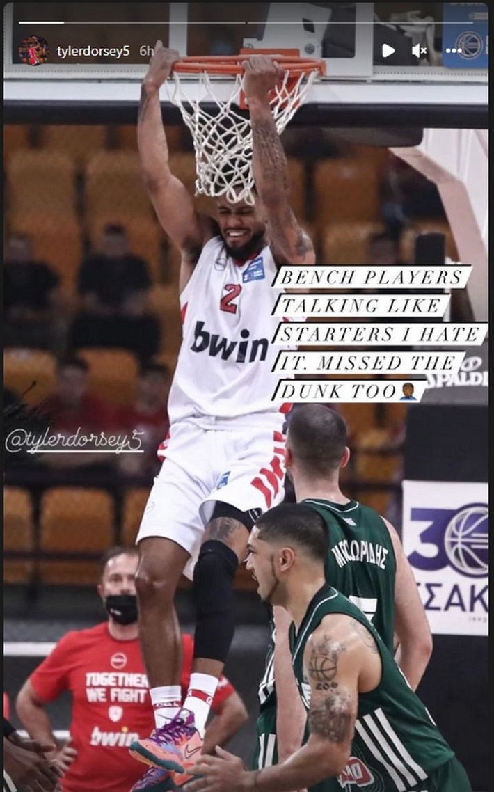 Ένα αινιγματικό, και ιδιαίτερα καυστικό, story στο Instagram έκανε ο Τάιλερ Ντόρσεϊ μετά το τέλος του πρώτου τελικού των φετινών πλέι οφ της Basket League στο ΣΕΦ.