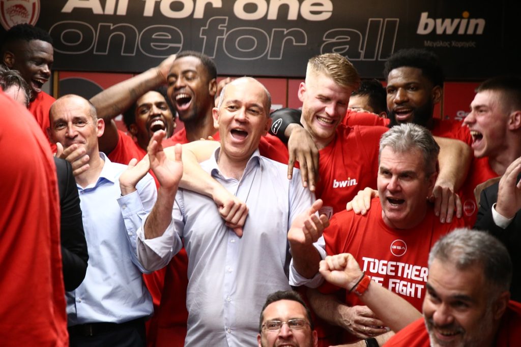 Ο Ολυμπιακός επέστρεψε στα F4 της Ευρωλίγκας και μπορεί ήδη να έχει τεθεί ο επόμενος μεγάλος στόχος, η κατάκτηση της κορυφής, αλλά λίγες ώρες χαράς και ξεσπάσματος είναι στο πρόγραμμα και τις δικαιούνται οι «ερυθρόλευκοι». Ηδη λίγα λεπτά μετά τη λήξη του αγώνα, στα αποδυτήρια στήθηκε τρελό γλέντι, παρόντων και των αδελφών Αγγελόπουλων και όλοι απόλαυσαν την πρώτη σημαντική κατάκτηση της χρονιάς.