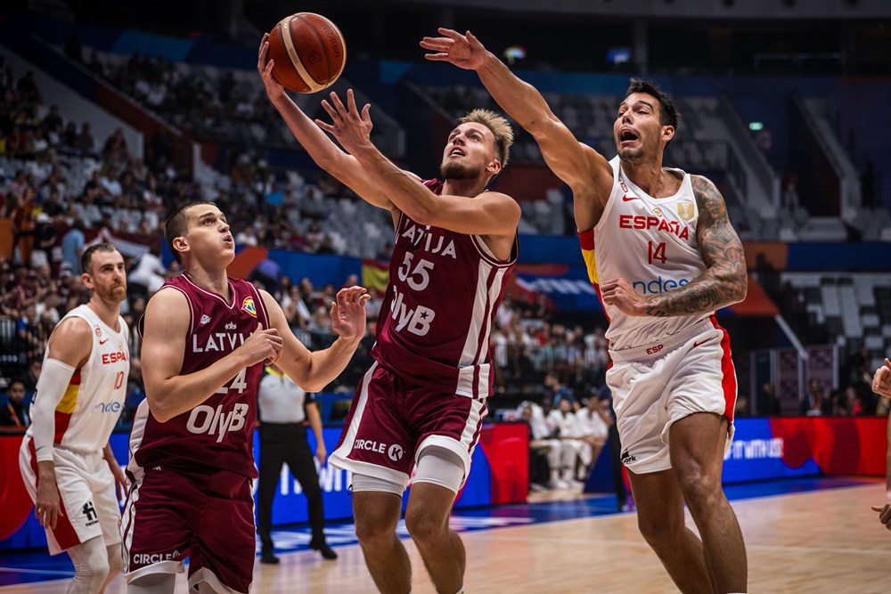 Σε ένα φανταστικό παιχνίδι που πραγματικά τα είχε όλα, εναλλαγές στο σκορ, δύναμη και μεγάλα σουτ, η Λετονία κατάφερε να υποτάξει και την πρωταθλήτρια κόσμου Ισπανία με 74-69. Με ανατροπή μάλιστα στην 4η περίοδο (όπως με τη Γαλλία) και επιστρέφοντας από το -12. Πλέον, η Λετονία έφτασε τις τρεις νίκες (3-1) πήρε την ισοβαθμία με την Ισπανία και θέλει τη νίκη με τη Βραζιλία, για να περάσει στα προημιτελικά. Οι Ισπανοί εάν ηττηθούν από τον Καναδά κινδυνεύουν με αποκλεισμό!