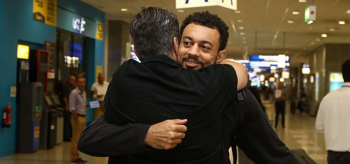 Χαρούμενος για την επιστροφή του στον Ολυμπιακό εμφανίστηκε ο Νάιτζελ Ουίλιαμς-Γκος, κατά την άφιξή του στην Αθήνα.