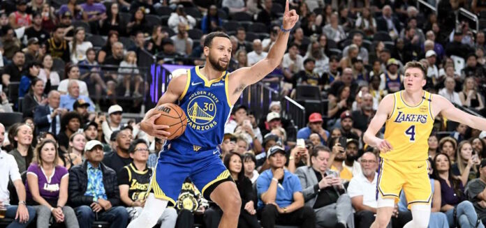 Οι «πολεμιστές» επιβλήθηκαν με 111-97 των Λος Άντζελες Λέικερς στην «T-Mobile Arena» του Λας Βέγκας χάρη στους 16π., τα πέντε ριμπάουντ και τις έξι ασίστ του Στεφ Κάρι, τους 21π. και τα πέντε ριμπάουντ του Μόουζες Μούντι και το «διπλό» Ντρέιμοντ Γκριν (10π., δέκα ριμπάουντ).