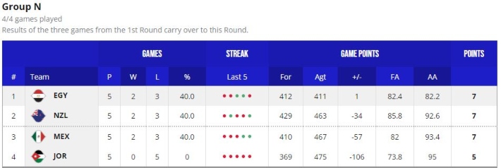 Στους αγώνες του Ν' ομίλου, η Νέα Ζηλανδία δυσκολεύτηκε κόντρα στην Αίγυπτο καθώς νίκησε με διαφορά μόλις δύο πόντων, 88-86. Αγώνας για γερά νεύρα ήταν και αυτός ανάμεσα στην Ιορδανία και το Μεξικό, με την ομάδα της κεντρικής Αμερικής να ανοίγει την διαφορά στο τέλος και να επικρατεί με 93-80.