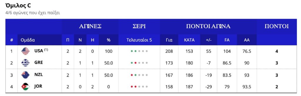 Η Εθνική Ανδρών ηττήθηκε από τις ΗΠΑ με 109-81 και πλέον στρέφεται στον πρόωρο τελικό με τη Νέα Ζηλανδία την Τετάρτη (30/8).