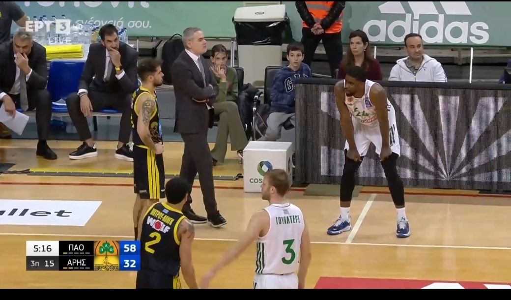 Στα μέσα της τρίτης περιόδου, οξύνθηκαν τα πνεύματα ανάμεσα στον τεχνικό του Άρη και τον Αμερικανό του Παναθηναϊκού. Αφορμή αποτέλεσε μία λογομαχία που είχαν νωρίτερα ο Αμερικανός φόργουορντ με τον Τζος Χάγκινς. Αυτό εκνεύρισε τον Γιάννη Καστρίτη που ζήτησε τον λόγο.