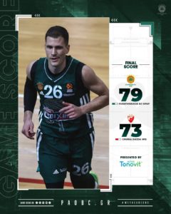 Σε μια αναμέτρηση όπου είχε μόλις 9 ετοιμοπόλεμους παίχτες και τον Παπαγιάννη με τις... φόρμες του θεατή στον πάγκο, ο Παναθηναϊκός με συγκλονιστικούς τους Νέμάνια Νέντοβιτς και Βασίλη Καββαδά, πήρε τη νίκη με 79-73 επί του Ερυθρού Αστέρα στο ΟΑΚΑ. Ο Σέρβος γκάρντ ήταν παρών σε όλη τη διάρκεια της αναμέτρησης, τράβηξε το μεγαλύτερο «κουπί» επιθετικά και ολοκλήρωσε την αναμέτρηση με 25 πόντους και 5 τελικές πάσες. Καθοριστικός και ο Βασίλης Καββαδάς, με τον Έλληνα σέντερ να αναπληρώνει το κενό του Γιώργου Παπαγιάννη (ήρθε από Λιόσια και το ματς της εθνικής αλλά δεν αγωνίστηκε), καθώς είχε 17 πόντους 6 ριμπάουντ και έβαλε το κρίσιμο καλάθι από πάσα πάρε-βάλε του Νέντοβιτς. Δεν ήταν όλα ρόδινα για τους «πράσινους» διότι χρειάστηκε να επιστρέψουν από το -9 στο τρίτο δεκάλεπτο, με τον «πρώην» Άρον Ουάιτ να κάνει τη μεγαλύτερη ζημιά (14 πόντους, 12 ριμπάουντ), ενώ έχασαν κατά κράτος τη μάχη των ριμπάουντ. Παρόλα αυτά ήρθε η νίκη από το γεγονός ότι βρήκαν λύσεις επιθετικά παρά τις απουσίες τους.Σημείωσαν παράλληλα την 7η νίκη τους στη διοργάνωση και για πρώτη φορά φέτος συνεχόμενες.