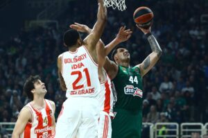 Ο ΠΑΙΚΤΗΣ-ΚΛΕΙΔΙ: Ο Κώστας Σλούκας μπορεί να μην ήταν ο 1ος σκόρερ του Παναθηναϊκού στον αγώνα, αλλά ήταν ο παίκτης που έκανε τη διαφορά στα σημεία που το «τριφύλλι» χρειαζόταν αντίδραση στις... επιστροφές του Ερυθρού Αστέρα. Πέτυχε σημαντικά καλάθια, οργάνωσε με ηρεμία το παιχνίδι, μοίρασε... παντού και ήταν ο παίκτης-κλειδί των γηπεδούχων. Ο Έλληνας γκαρντ σκόραρε 9 πόντους (3/6 σουτ), κατέβασε 3 ριμπάουντ, μοίρασε 7 ασίστ, έκλεψε 1 μπάλα, ενώ υπέπεσε και σε 2 λάθη (17 PIR), επιβεβαιώνοντας την εξαιρετική κατάσταση στην οποία βρίσκεται στα τελευταία παιχνίδια της ομάδας του.