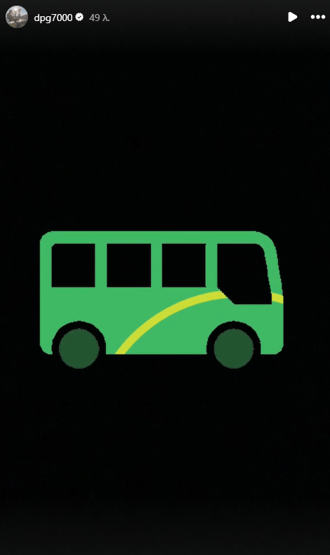 Λίγο πριν τελειώσει το παιχνίδι μάλιστα ο ισχυρός άνδρας των πρωταθλητών Ελλάδας κι Ευρώπης ανέβασε ένα story στον προσωπικό του λογαριασμό στο Instagram μ' ένα πράσινο πούλμαν.