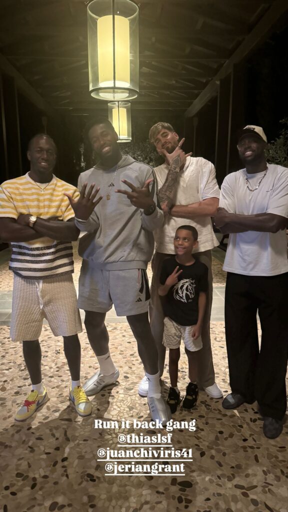 Κέντρικ Ναν, Ματίας Λεσόρ, Χουάντσο Ερνανγκόμεθ και Τζέριαν Γκραντ πόζαραν στο φωτογραφικό φακό, με τον Αμερικανό σούπερ σταρ να αναρτά την εικόνα στον προσωπικό του λογαριασμό στο Instagram και τον Γάλλο σέντερ να δίνει το σύνθημα για το 8ο ευρωπαϊκό.