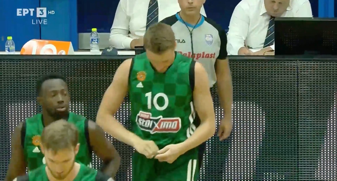 Στην φιλική αναμέτρηση του Παναθηναϊκού με την Κλουζ, ο Μάριους Γκριγκόνις μπήκε στο παρκέ με τη φανέλα του Κώστα Σλούκα.