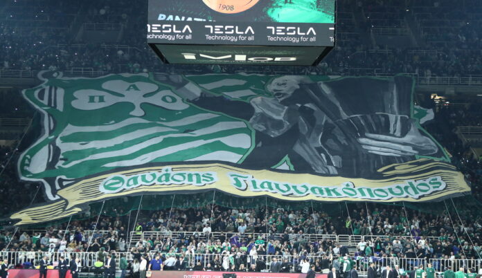 Αυτό το έπραξαν με ένα τεράστιο πανό στο κέντρο του γηπέδου, λίγο πριν την έναρξη του παιχνιδιού απέναντι στη Μπαρτσελόνα. Το πανό απεικονίζει τον Θανάση Γιαννακόπουλο να κρατάει ένα από τα ευρωπαϊκά τρόπαια του "τριφυλιού", δίπλα την σημαία και από κάτω με χρυσό φόντο και πράσινα γράμματα το όνομα του.