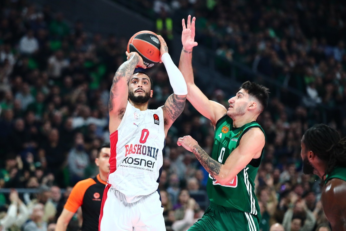 Ο Παναθηναϊκός έκανε με άνεση το 2/2 στη «διαβολοβδομάδα» του Δεκεμβρίου, επικρατώντας και της Μπασκόνια με 104-69, σε ένα παιχνίδι που σημαδεύτηκε από μια σειρά ατυχών γεγονότων. Με το μυαλό αποκλειστικά στον -σοβαρά- τραυματία Ματίας Λεσόρ, οι «πράσινοι» ανέβηκαν στο 10-7, ενώ οι Βάσκοι έπεσαν στο 7-10.