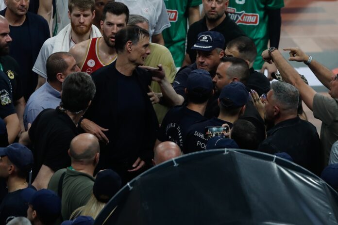 Κατά την αποχώρησή του από τον αγωνιστικό χώρο του γηπέδου μετά τη λήξη του πρώτου ημιχρόνου του τρίτου τελικού του πρωταθλήματος της Stoiximan GBL, ο Γιώργος Μπαρτζώκας, επιτέθηκε φραστικά στους θεατές των courtside θέσεων του γηπέδου, χρησιμοποιώντας υβριστικές και υποτιμητικές… pic.twitter.com/c1uNLBm6R3