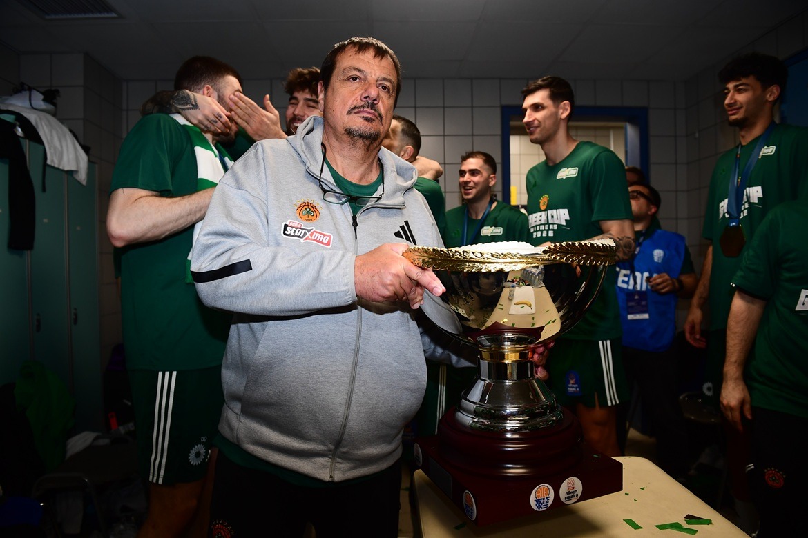 Στα αποδυτήρια των πρασίνων ξέσπασαν ξέφρενοι παννηγυρισμοί για τη κατάκτηση του πρώτου τίτλου για το 2026, με παίχτες και προπονητές να γίνονται ένα.